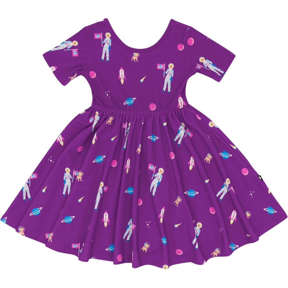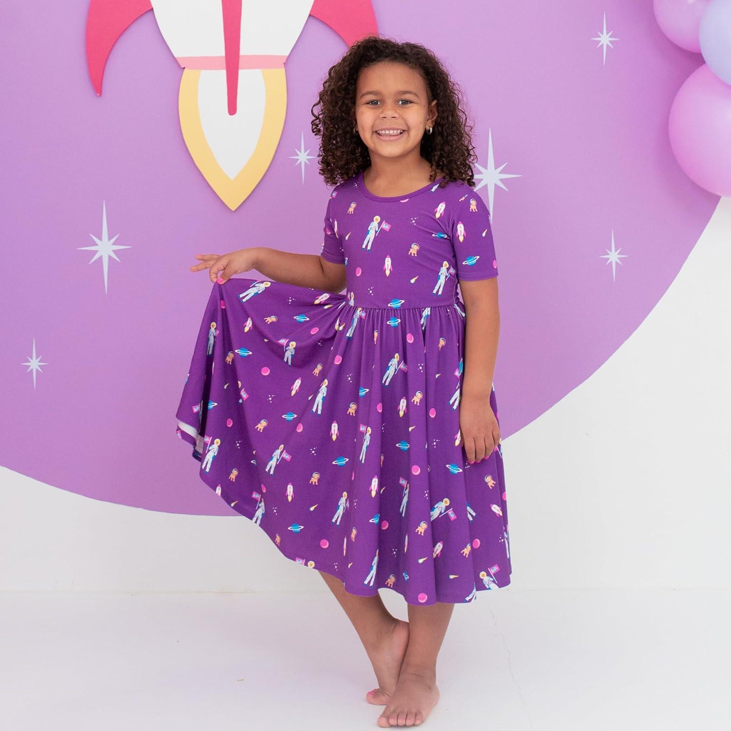 KYTE BABY Toddler Girls Twirl Dress – Ultra Soft Rayon Made from Bamboo(Barbie Astronaut)